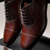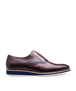 Maintenance: Since leather is a living material, it is essential to moisturize it regularly to optimize its flexibility, as well as its waterproofing and longevity. The correct frequency is to polish your shoes every 4 to 5 times you wear them. By respecting the alternation rules (RULE 2), this is equivalent to polishing your shoes 2 to 3 times a month on average, or even every week if you only have two or three pairs. Finsbury is the leader in high-end men’s shoes. Specializing in GoodYear and Blake stitching, Finsbury offers dress shoes, boots, loafers, sandals, sneakers and a wide range of accessories. The Heathrow Brown model is an essential for men’s wardrobe. A brogue, a rubber sole, the perfect combo for the elegant man who wants pronounced comfort. This model is from our Business Line collection, designed for the modern man. The Business Line is designed for the working man who travels a lot and combines chic with practicality. It addresses a simple problem: “How can we offer the working man suitable, elegant, comfortable and versatile shoes?”