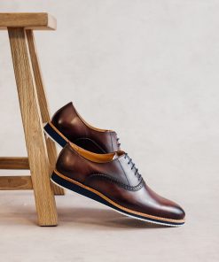 Maintenance: Since leather is a living material, it is essential to moisturize it regularly to optimize its flexibility, as well as its waterproofing and longevity. The correct frequency is to polish your shoes every 4 to 5 times you wear them. By respecting the alternation rules (RULE 2), this is equivalent to polishing your shoes 2 to 3 times a month on average, or even every week if you only have two or three pairs. Finsbury is the leader in high-end men’s shoes. Specializing in GoodYear and Blake stitching, Finsbury offers dress shoes, boots, loafers, sandals, sneakers and a wide range of accessories. The Heathrow Brown model is an essential for men’s wardrobe. A brogue, a rubber sole, the perfect combo for the elegant man who wants pronounced comfort. This model is from our Business Line collection, designed for the modern man. The Business Line is designed for the working man who travels a lot and combines chic with practicality. It addresses a simple problem: “How can we offer the working man suitable, elegant, comfortable and versatile shoes?”