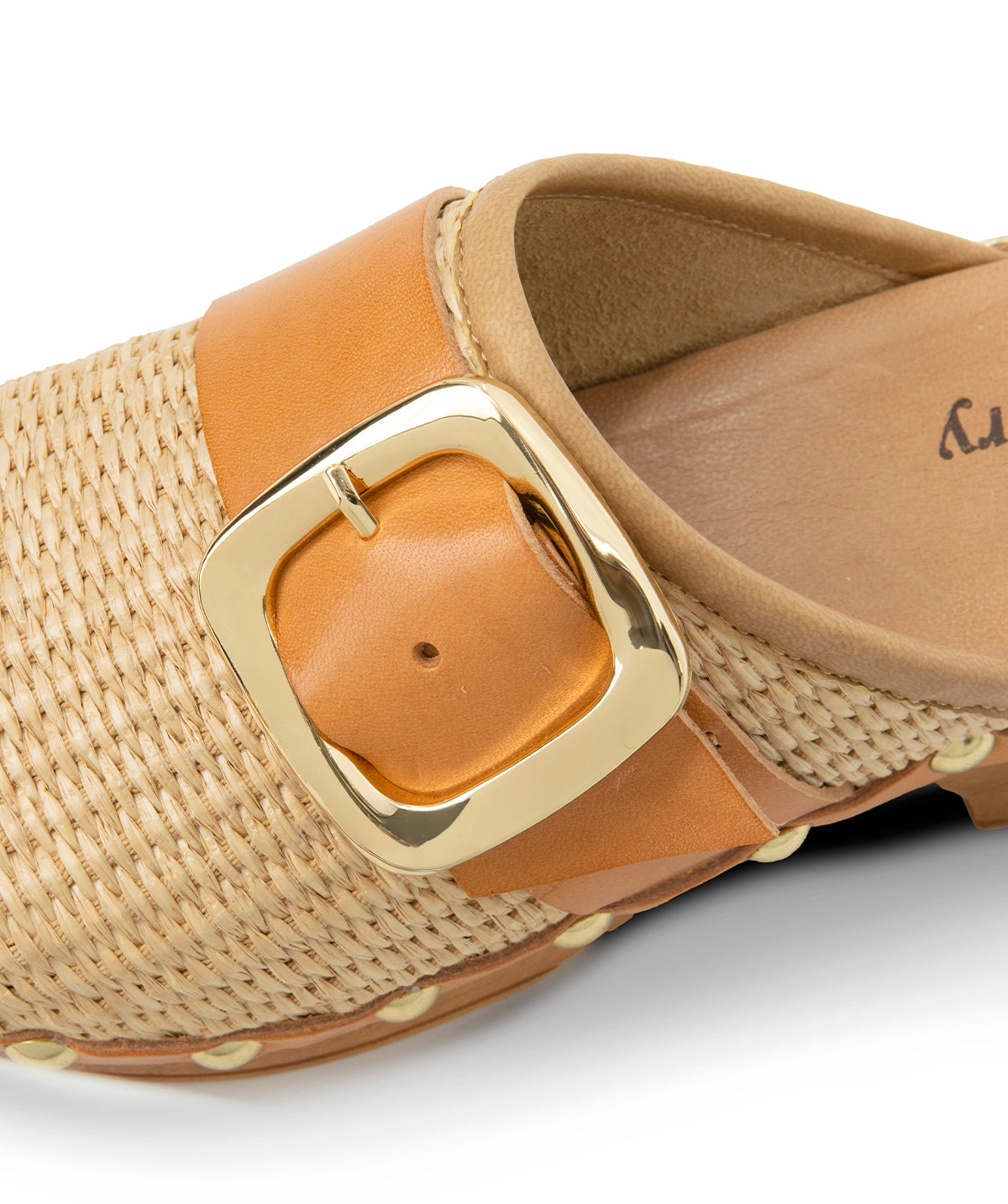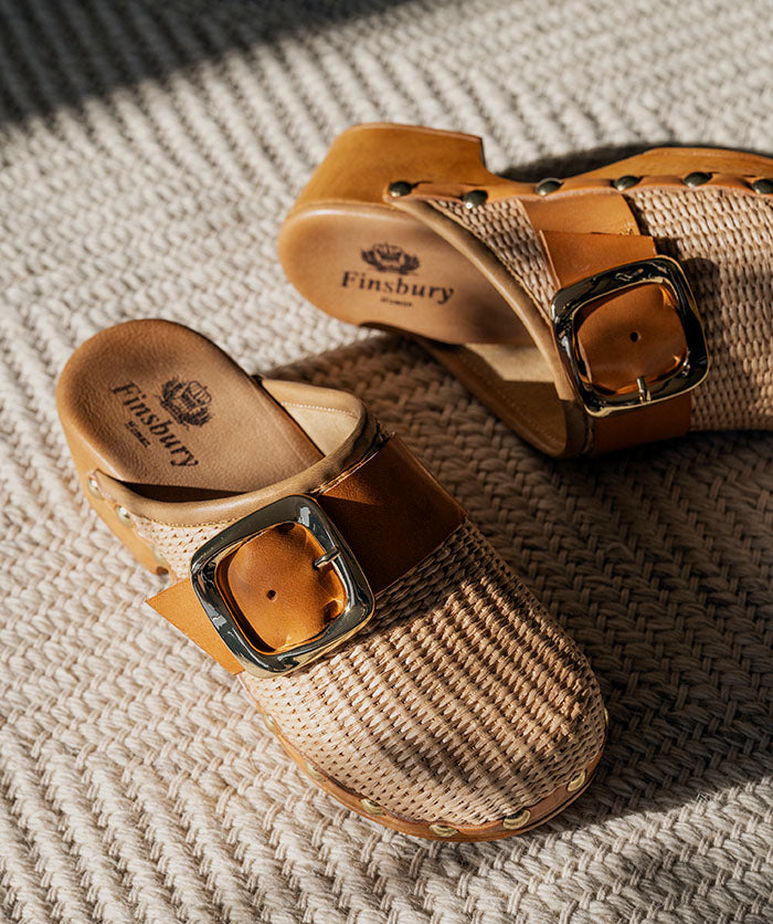 Discover the Anastasia clog from Finsbury, a unique model where nostalgia and modernity meet to create a shoe that is as chic as it is casual. Crafted from natural raffia and premium leather, this clog is the must-have summer piece, perfect for enhancing all your summer outfits. Thanks to its refined design and bohemian spirit, the Anastasia clog can be worn with both casual and more sophisticated outfits. Whether for a stroll in the city, a moment by the pool, or a summer outing. Made from woven raffia and natural leather, the Anastasia clog offers a feeling of lightness and excellent support. Its interior is designed for optimal comfort, allowing it to be worn all day without restriction.