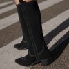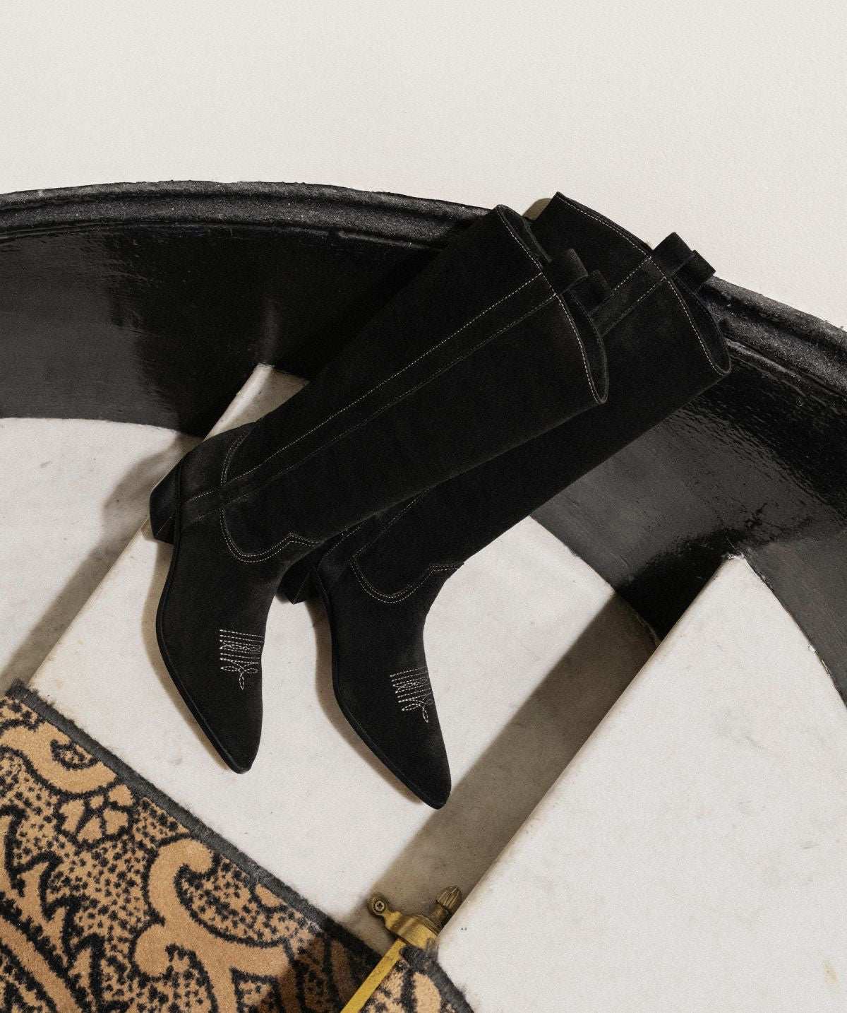 Finsbury Woman’s JUDITH cowboy boots are the perfect wardrobe staple for a bold, on-trend look. Crafted from premium suede, these boots feature elegant embroidery on the front, adding a touch of character to any outfit. Their iconic, western-inspired design is perfect for those looking to express their individuality with refinement. JUDITH cowboy boots are the perfect piece to elevate your looks, whether casual or dressier. Their sleek silhouette and intricate detailing make them a versatile pair that’s perfect for any occasion.